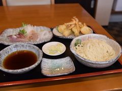 1番の人気メニューです。うどんの他に「天ぷら」「刺身」が付いています。