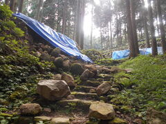 本丸下まで登ると石垣が見えましたが、あちらこちらにまだブルーシートが掛けられていて崩れた石垣も散乱していました。室町時代に築城されたと伝わる七尾城、約600年間保たれてきた石垣が崩壊するほどの大地震だったのですね。