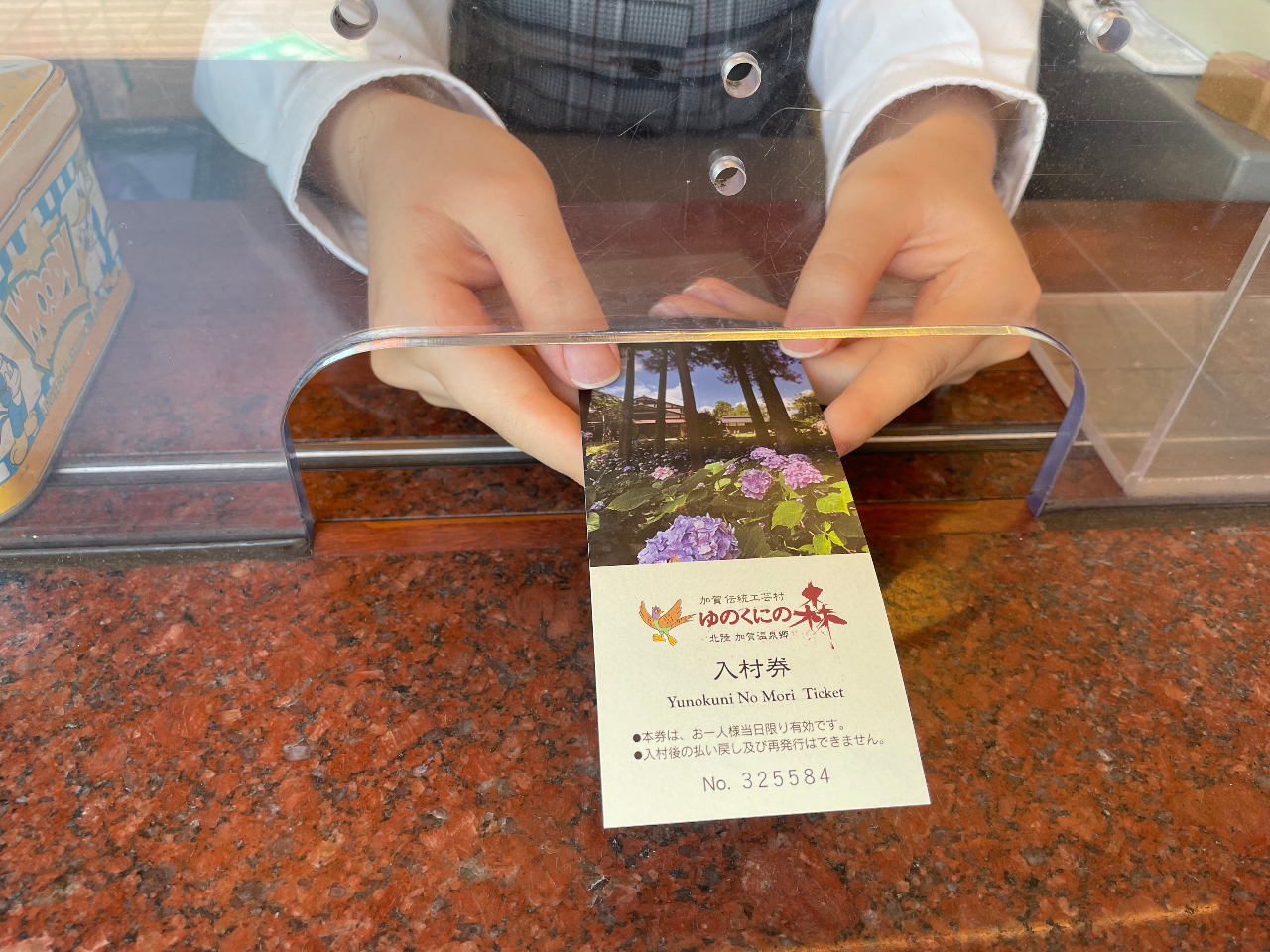 ゆのくにの森入村受付で入村料支払い時、「じゃらんnetで予約した○○です。」とお名前をお申し出ください。