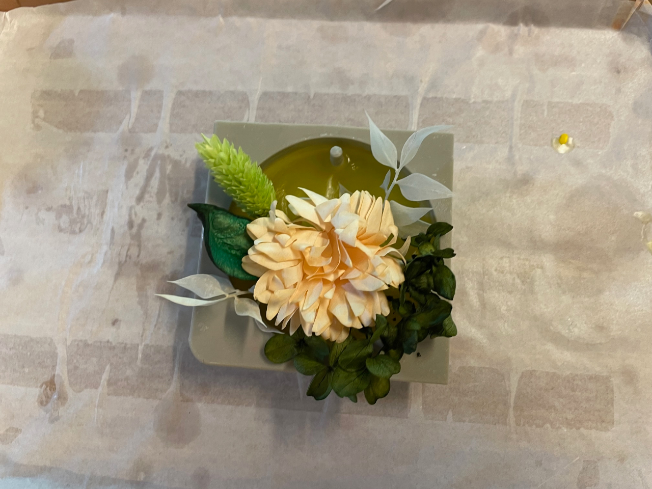 ロウの中にお好みのドライフラワーを埋め込みます。
