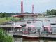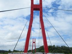湖をまたぐ赤い橋のアイリスブリッジがシンボル的な北潟湖