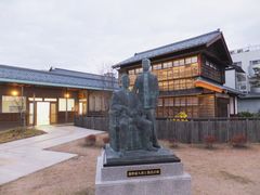 「あわら温泉 湯のまち広場」の東側にある「藤野厳九郎記念館」。藤野厳九郎は、あわら市生まれの医師であり教育者。記念館の建物は、三国町にあった旧宅を「湯のまち広場」に移築したものです。記念館前には藤野厳九郎と魯迅の銅像が建立されています。