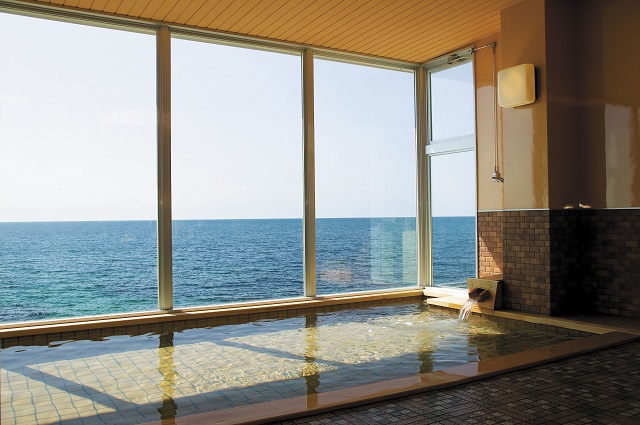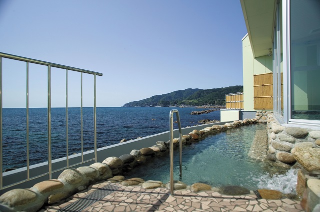 当館は日本海沿岸に位置していて、露天風呂に入ると眼前には水平線が広がります。
