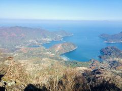 登り2時間程の山、途中鎖場などあり要注意。頂上の大岩からは青く光る若狭湾を眼下に。