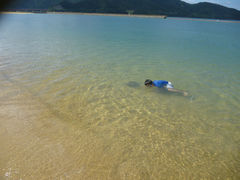 初日は前夜から降り続いた雨の影響か、海もあまり綺麗ではなかったです。2日目は初日に比べると海もずいぶんと綺麗でした。ですが、若狭の海としては透明度はそれほど高くないと思います。若狭の海は色々と行ってますが「ま、こんなものか」という印象です。波は穏やかというかほとんどない状態で小さな子連れには良いです。