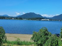 厳しいですが 河口湖は今日も涼しげです〜河口湖では遊泳禁止ですが〜