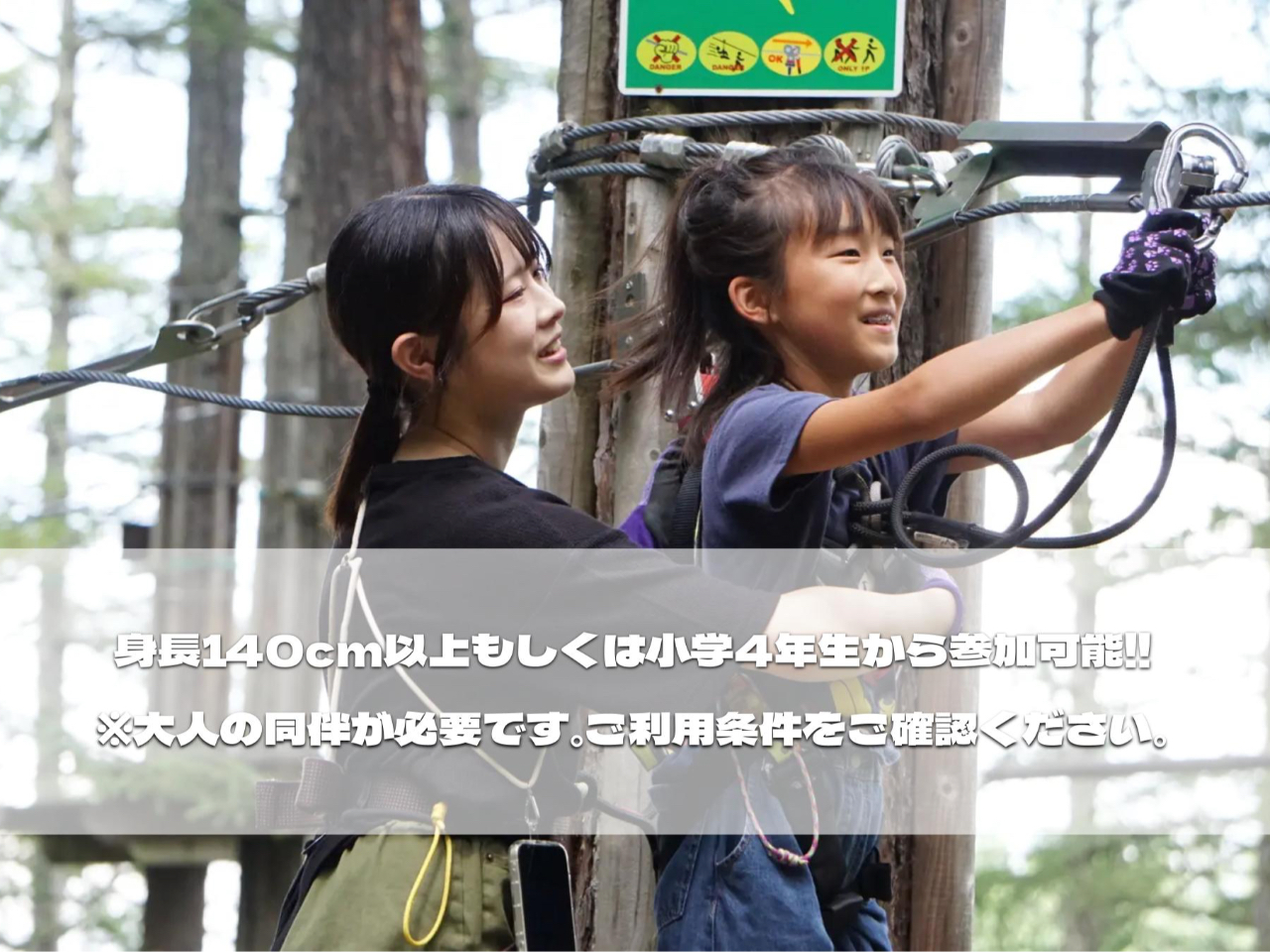 特に飯綱山をバックに大座法師池の上空を滑空する150mのジップスライドは、爽快感抜群!ジップライン