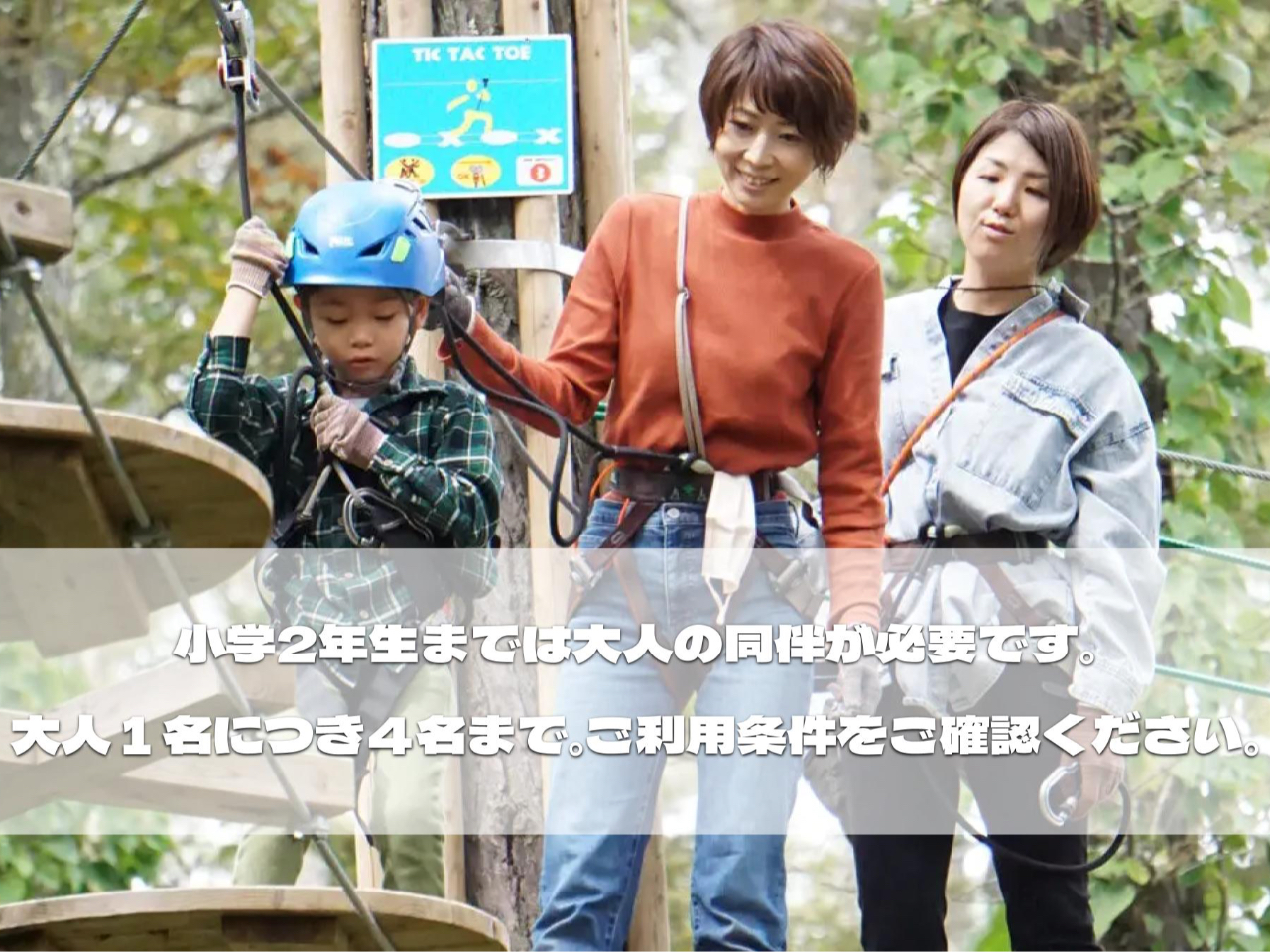コースは、池越えジップスライドを含む全4サイト周る本格的な森の冒険を楽しむことができます。