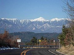 美鈴湖から浅間温泉方面へと移動して来ると右手方面には松本浅間カントリーがあるのですが、その付近まで来ると、走行中の車のウィンドウに飛び込んで来るように常念岳を中心とした雪の北アルプスが現れます。