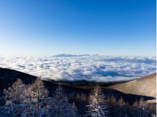 高峰高原を拠点に、本格的な雪山を楽しめる軽登山コースです。
