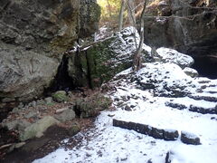 駐車場から本殿に上がる山道の途中にはこのような滝も見ることができます。この時は滝が凍っていました。