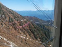 雲一つ無い晴天に恵まれ眼下に色づき始めた樹林を眺め7分30秒のロープウェイに感動