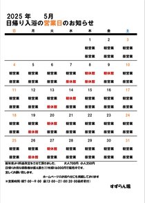 2025年5月<日帰り入浴営業日>のお知らせ