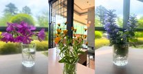 その花達をラウンジの一輪挿しにしています。