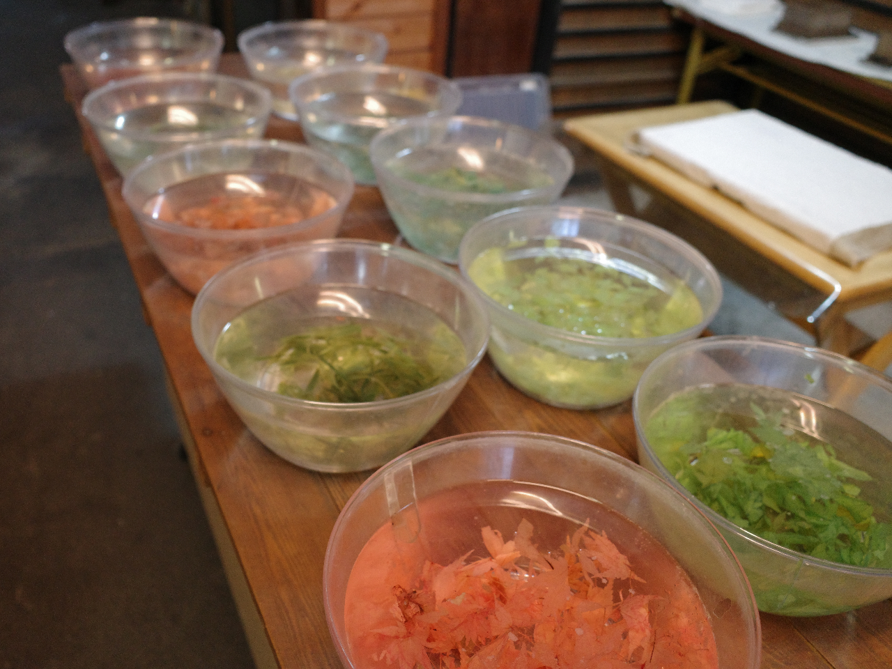 お好きな葉っぱや、色などを使って、自分だけのオリジナル和紙が作れます。