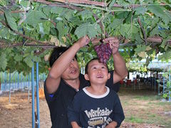 ※写真はスタッフのお兄さんがぶどうのとり方を子供に教えてくれている様子です。