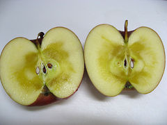 安曇野のりんご、特産の品種は「ふじ」中心部にたっぷり詰まった蜜が特徴です。