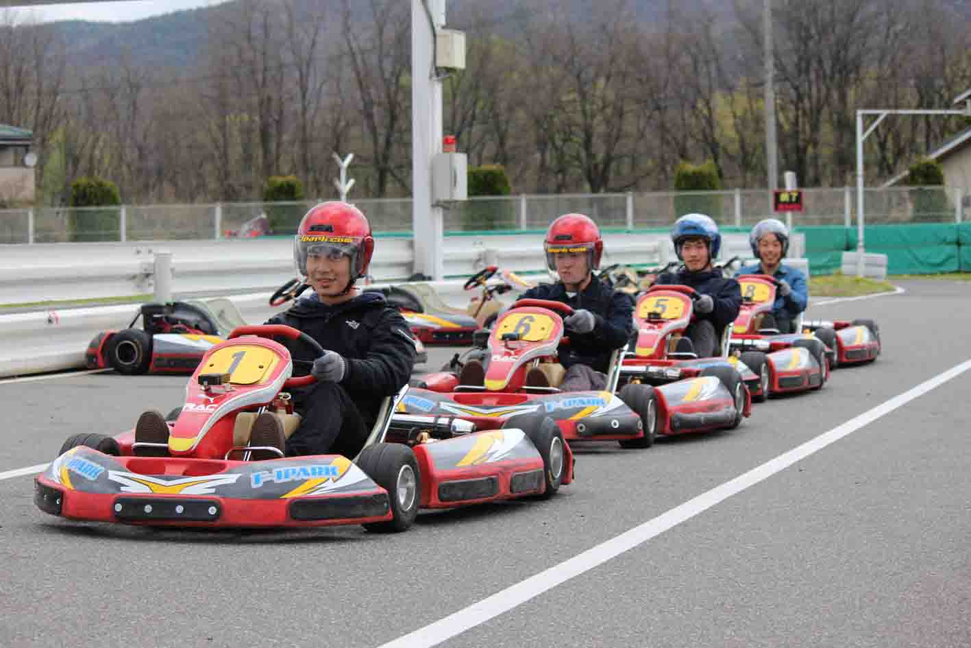 仲間同士タイムを競いあい、シャンパンファイトで大盛り上がり間違いなし!ゴーカート・公道カート