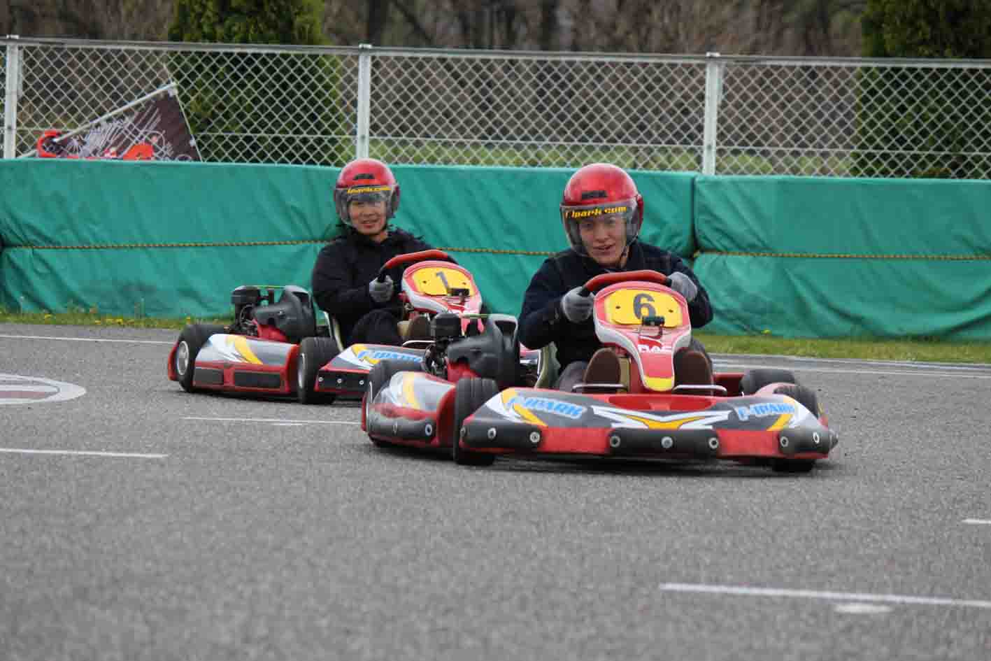 しっかりと服装を整え、ヘルメット・グローブを装着しカートに乗車します。