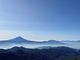9:41撮影。 快晴の中、富士と甲府市外に 靄がかかる。 手前の緑の絨毯の重なりも見事。