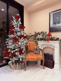 今年のツリーは雪がかぶっていて、白い中に真っ赤なポインセチアがとっても目立って写真映え間違いなしです!