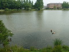 公園内の池と鴨