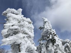 風にあおられ、静止する樹氷。水ノ塔山山頂付近から現れ始める。