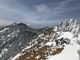 篭ノ塔山へ続く縦走区間。左の赤ガレ斜面の右にある雪道を進む。