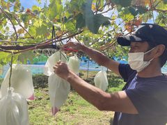 農園に着いて案内された所でいくつかなっているマスカットの中から一房ハサミで取って下さいと言われ 袋がかぶさっているので どれが大きいのか見分けるのが難しく、なんとなくで取りました。3人で行きましたが みんな粒が大きくて