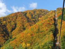 今年は例年よりも一段と色鮮やかで、山肌全体が赤や橙、黄金色に染まっています。