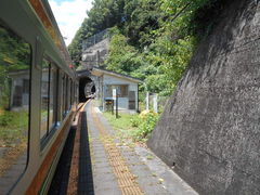 JR飯田線の秘境駅の一つ田本駅、豊橋駅から4時間近く。当然乗降する客もいませんが、天竜峡ならではの無人駅が続きます。