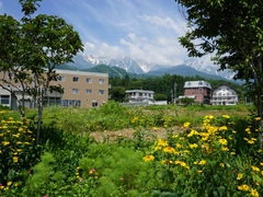 八方バスターミナルで、レンタサイクルを借りて、白馬の町を散策した。天気も良く、白馬三山等の眺めが良かった。