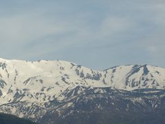 雪渓が残る山々が綺麗です。