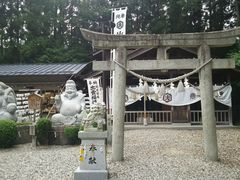 細い道でしたが、案内の標識に沿って行けました。整備された駐車場は無くて、他の車と同じように、境内の草地に車を停めました。お社は大きくありませんが、その前に大きな恵比須様と大黒様が祀られていました。お腹をなでると願いが叶うと言われている旨の案内がありました。