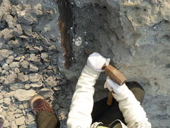 博物館から少し離れた土岐川の河原にあります。ハンマーやタガネなどの道具を持っていれば、だれでも、貝や植物の化石が採集できます。ここから見つかる化石は、今から1700万年前(新生代第三紀中新世)の貝・植物などの化石です。きれいなサメの歯や大きなクジラの化石も見つかっています。必ず瑞浪市化石博物館に採集許可を得て、道具を持参してください。