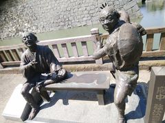 駿府城址の堀の前にありました。東海道中膝栗毛の主人公、弥次さんと喜多さんの像で、2人の間に座って写真を撮れるようになっていました。作者の十辺舎一九は駿府の生まれだそうです。