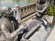 十返舎一九「東海道中膝栗毛」に登場する弥次さん喜多さんの銅像。駿府公園内巽櫓の間近ある。2人といっしょにポーズをとって記念撮影はいかが?