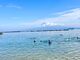 人工ビーチという事で、割と浅い海の中も少し岩がごつごつしている部分があるようで、足を切りやすい所があるよう