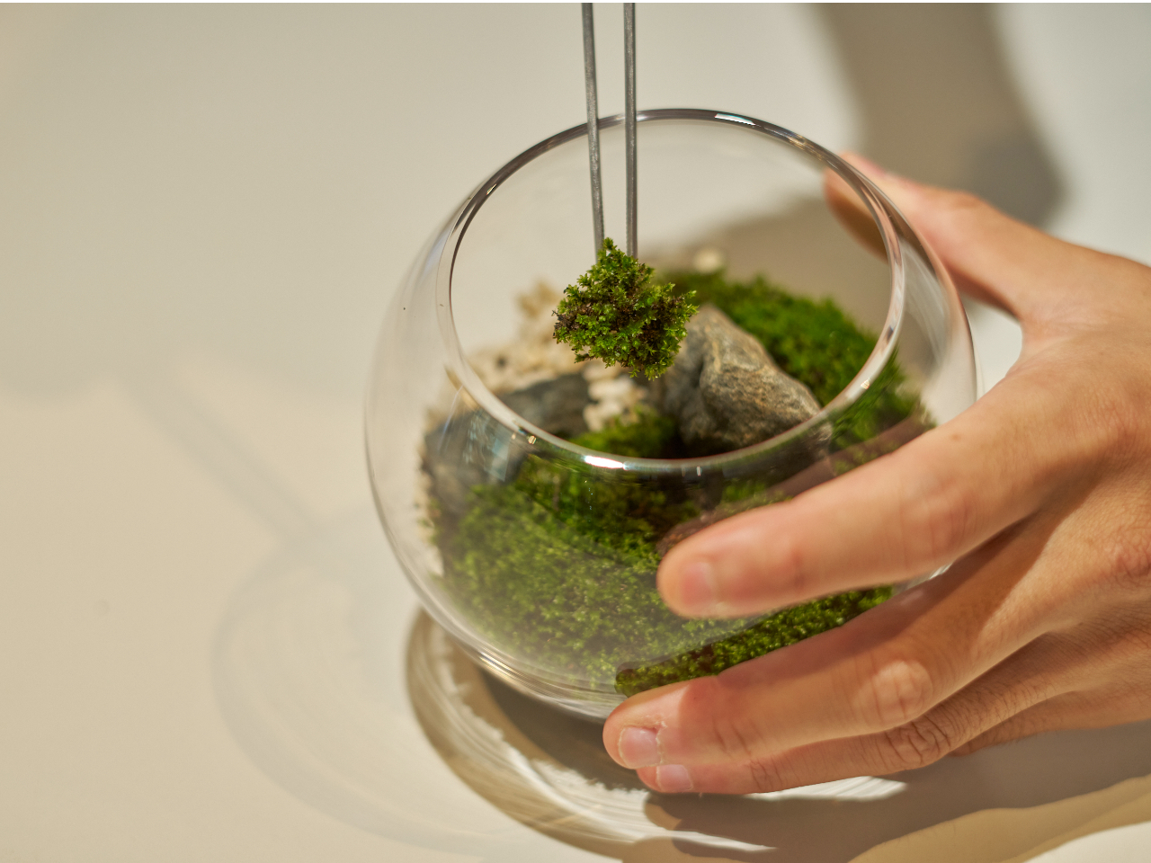 ACAO FORESTに自生する苔を使い、自分だけのテラリウムを作れます。