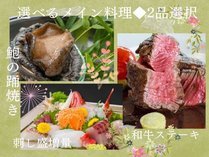 選べるメイン料理◆1品選択<鮑/牛ステーキ/刺盛増量から1品>金目煮付朝食