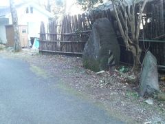 その城山へ分け入る林道があります。舗装はされているもののかなり細い道です。