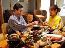 湯上がりには、お部屋で地元食材をふんだんに使った季節の懐石を。