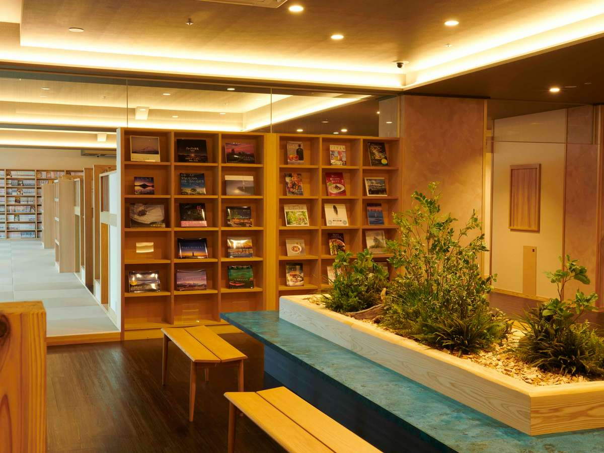 【休息房】350uの広々としたリラクゼーションスペースもご用意。横になって休めるスペースや約2,500冊のコミックや様々なジャンルの書籍もございます。