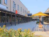 - 約200のブランドショップとレストラン。富士山が見える広大な自然環境の中、北米の 歴史ある街並みを散策するように一日中ショッピングが楽しめます。