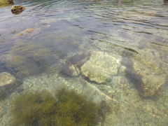 砂地でなく石や岩なこともあり、とにかく海水の透明度が高いです。青くも緑にも見えてとても綺麗です。シュノーケリングで綺麗な小魚などが見られるのでぜひ。