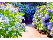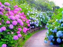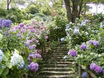 下田港にのぞむ小高い丘、北条氏の鵜島城のあった下田公園は、およそ15万株300万輪のアジサイの中を散歩道が縫うロマンチックな所。品種も日本種ばかりではなく、ブルーキング、ホワイトウェーブなどの西洋種も多く見られる。アジサイの他、サクラ、フジなどの木も多い。