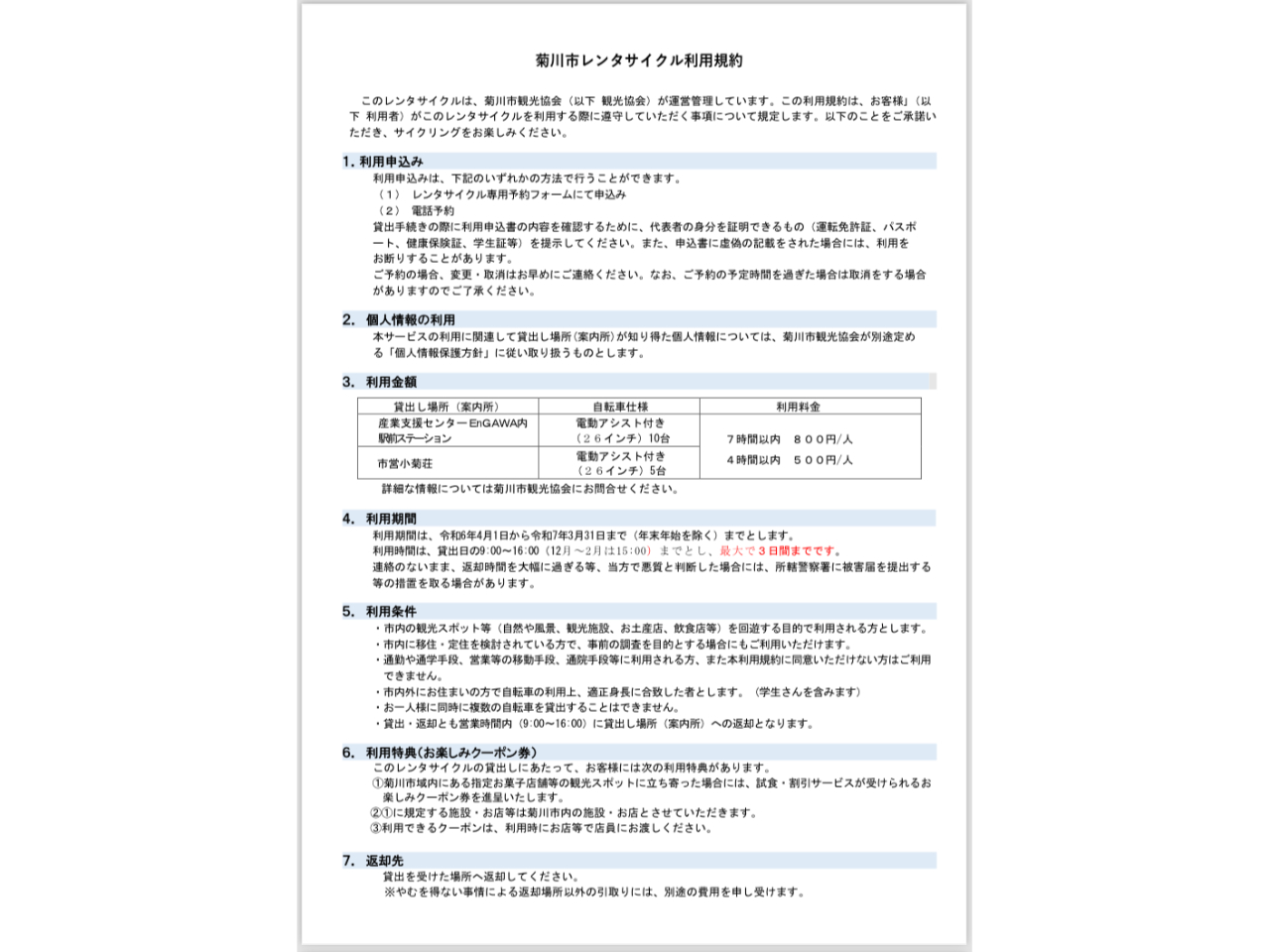 レンタルのお客様には市内の飲食店や体験、お菓子屋さんで使えるお楽しみクーポンをプレゼント中!