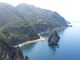 雲見海岸を囲む様にそびえるのが雲見烏帽子山、海と山が接近する西伊豆らしい地形。標高は約160mですが、海岸から急傾斜で立ち上がるので迫力が有ります。