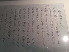 館内の展示に「 養之如春 (ようしじょしゅん) 」という言葉がありまして、これは、「 これを養うや 春の如し 」と読み下しますが、その意味は、「春の光が万物に芽を出させ、花を咲かせるように、何事をなすにも、温かく、おおらかに、あせらず、休まずにということ」で、井上靖氏が好きだった言葉だそうです。