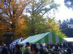 11月8日の「信長公黄葉まつり」に行ってきました。この日は地元産の野菜や焼きそばなど出店が並んだり和太鼓・火縄銃など様々な催し物などもあり賑やかでした。また境内にある銀杏の木も紅葉で大変綺麗でした。